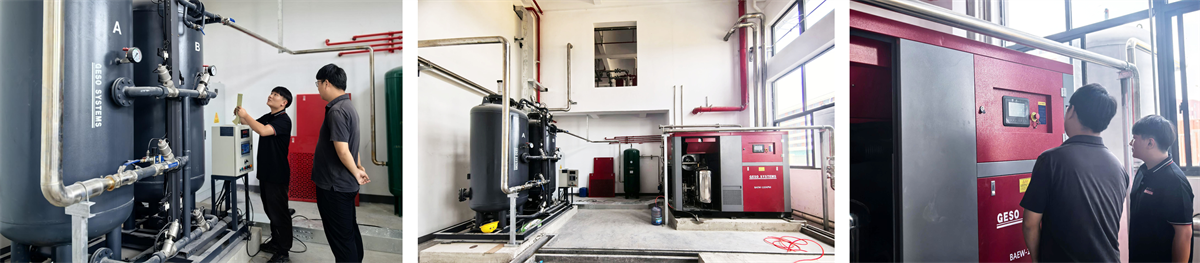 -একটি স্মার্ট পোস্ট-প্রসেসিং সিস্টেম (তিন-পর্যায়ের নির্ভুলতা ফিল্টার এবং উচ্চ-দক্ষতার রেফ্রিজারেটেড ড্রায়ার সহ) মাল্টি-স্টেজ শুদ্ধিকরণের মাধ্যমে আর্দ্রতা, তেল কুয়াশা এবং কণাগুলি অপসারণ করতে কনফিগার করা হয়েছে। সিস্টেমের চাপ ড্রপ <0.3 বার, উল্লেখযোগ্যভাবে সরঞ্জাম পরিষেবা জীবনকে প্রসারিত করে।
